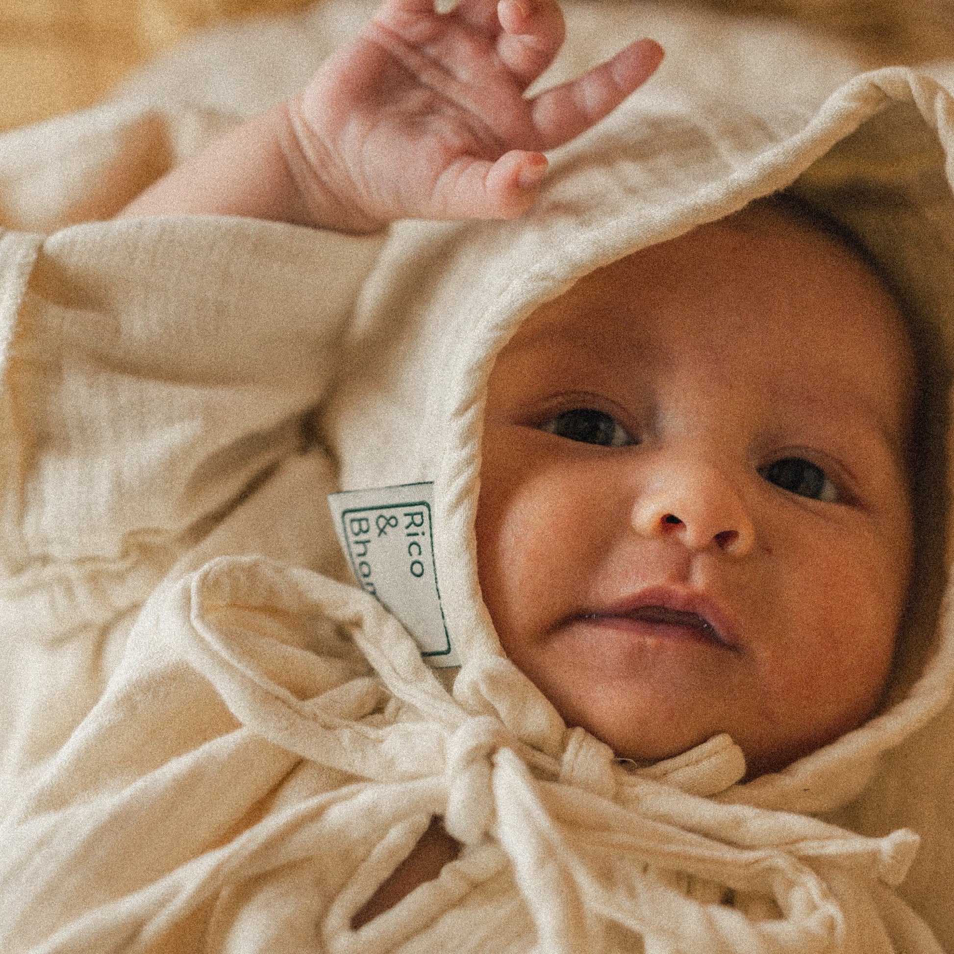 ロンパースと同じ生地で、ぽこぽことした生地感が上品なボンネットです。ロンパースとセットが可愛いのは勿論、普段着を格上げしたい時にも重宝します。どんな色にも合う上に、ガーゼならではの生地感でしっかり存在感があるのもポイント。通気性・保温性・吸湿性に優れた通年お使いいただける生地のため、敢えて裏地はつけていません。ちょっとした出産祝いにも。(着用モデル:生後1ヶ月)